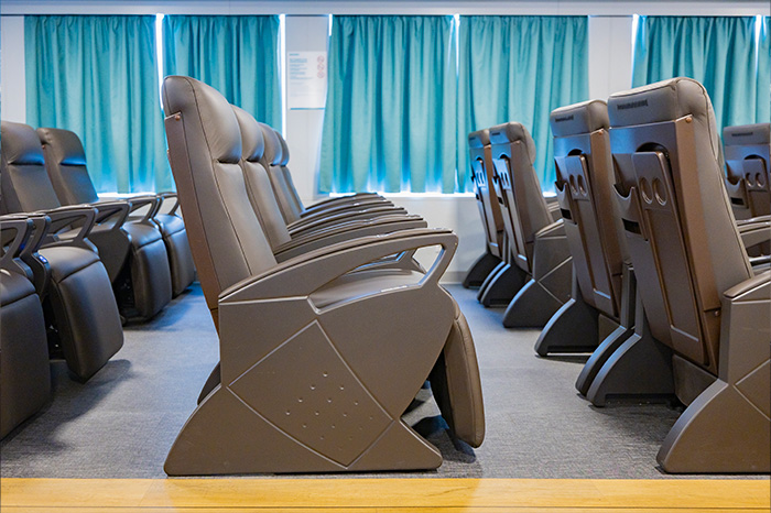 After more than 18 years in continuous operation, the seating has been restored to a like-new condition through the renewal of upholstery only, while the original structural frame, control electronics, and actuator motors remain fully operational.