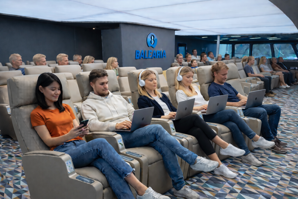 On board the fast ferry Jaume III, Keyton First Class seating enhances the passenger experience through silent electric recline, refined ergonomics, and premium materials, delivering comfort and reliability on high-speed routes.